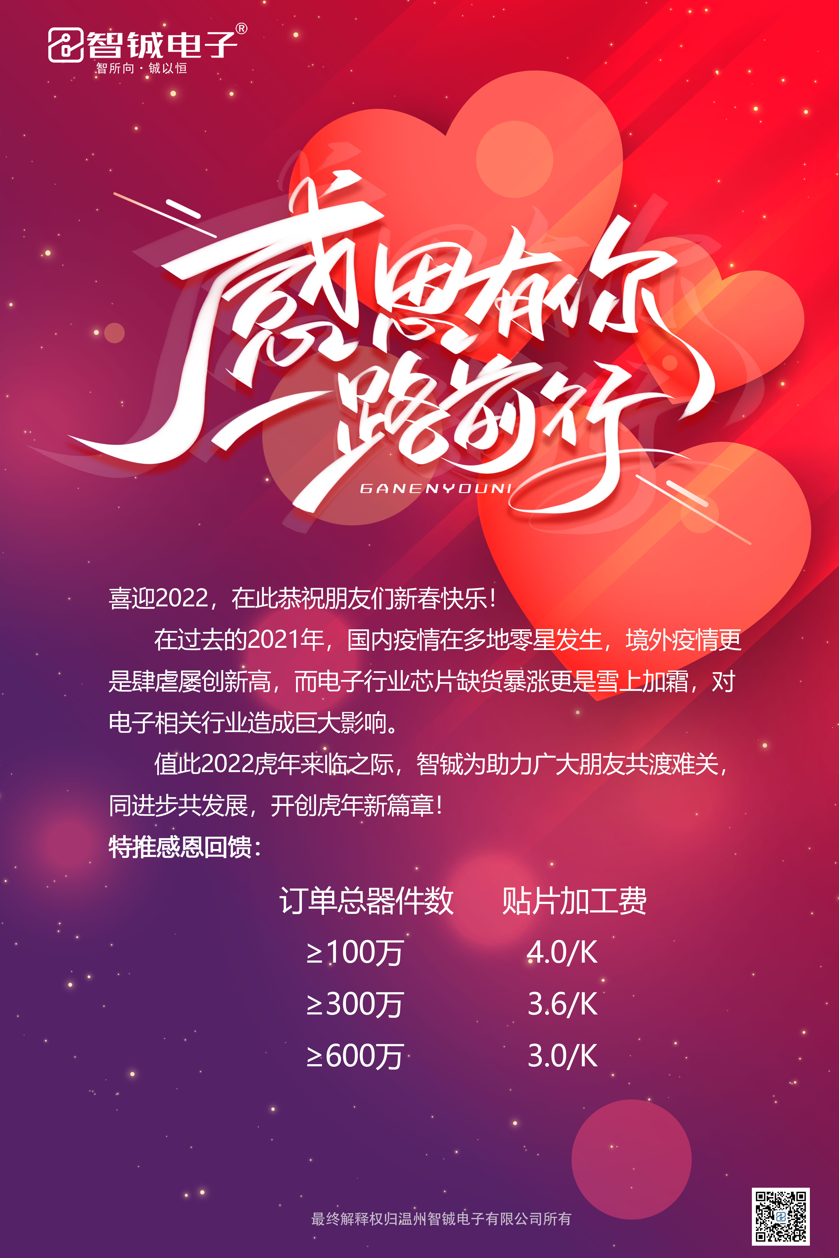 值此2022虎年來臨之際,智鋮為助力廣大朋友共渡難關(guān),同進(jìn)步共發(fā)展,開創(chuàng)虎年新篇章!
